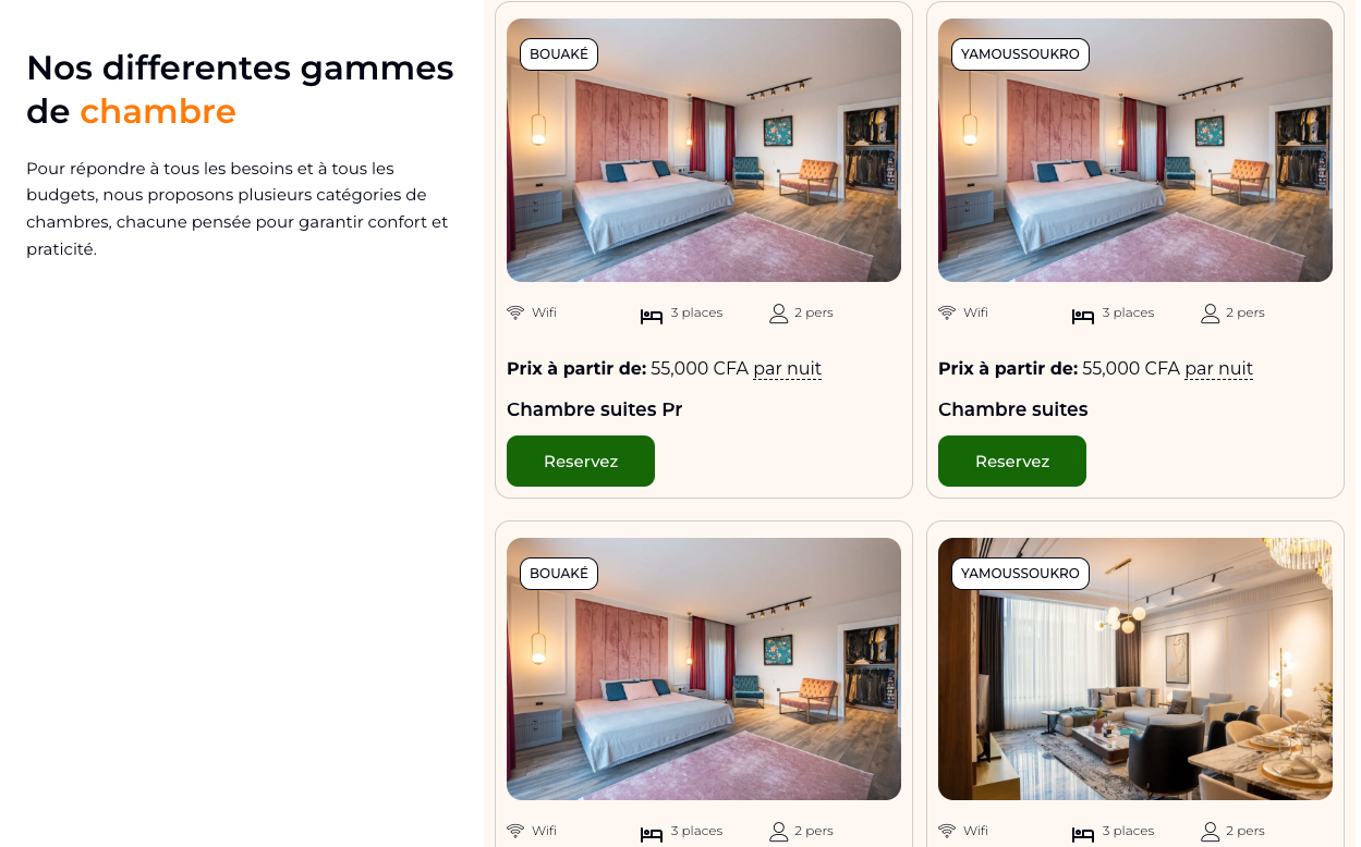 Le site « Complexe Nikif » est un site web hôtelier qui met en avant les services de l’hôtel. Le visuel reste simple et épuré, avec un design unique basé sur l’identité visuel de l’hôtel. Situé au cœur de Bouaké et Yamoussoukro, l’établissement allie sérénité et élégance pour offrir une expérience unique aux clients. Entre chambres confortables, service attentionné et cuisine raffinée, tout est réuni pour transformer le séjour en un véritable moment de détente et de plaisir.