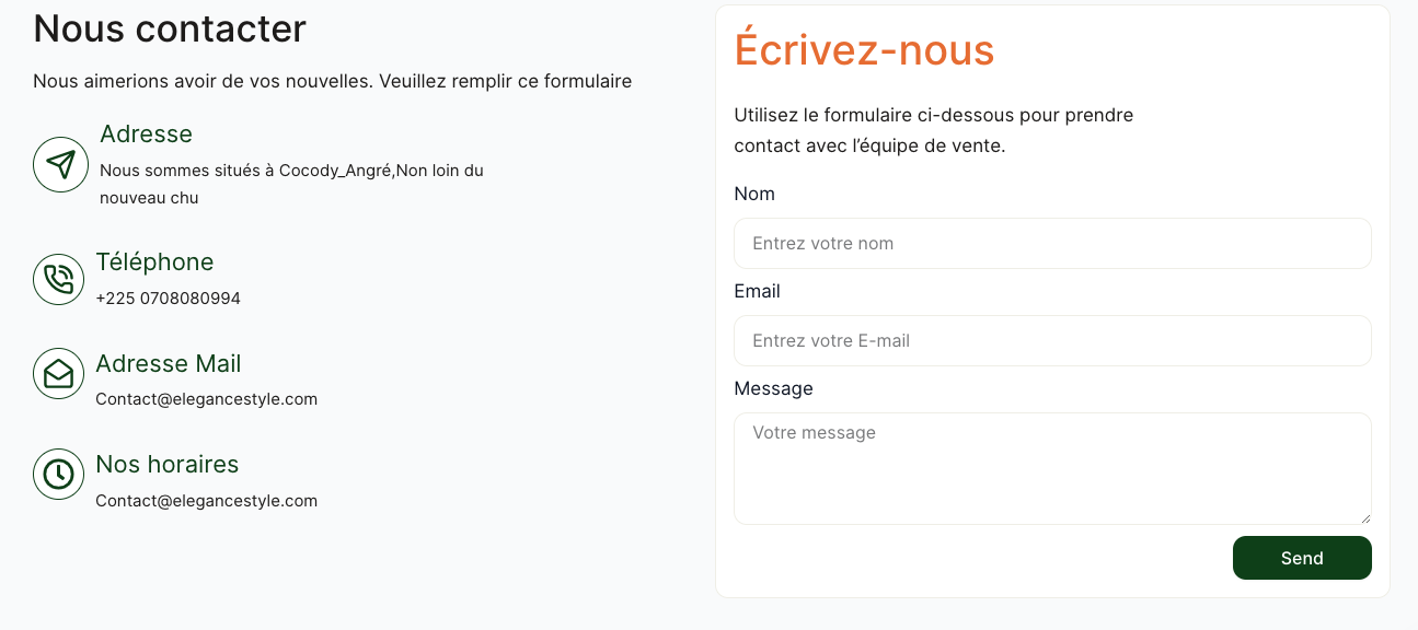 Le site a pour objectif de renforcer la présence digitale d’Elegance Style, de présenter ses collections à un public plus large et de simplifier l’achat en ligne. Il permet également de valoriser l’image de la marque et d’attirer de nouveaux clients à travers une vitrine digitale moderne.