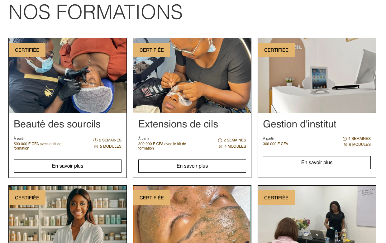 Le site a pour but d’augmenter la visibilité de l’institut, de présenter ses prestations et de faciliter la prise de rendez-vous en ligne. Il sert également de vitrine pour promouvoir les formations en esthétique et renforcer la crédibilité de la marque auprès d’un public local et professionnel.